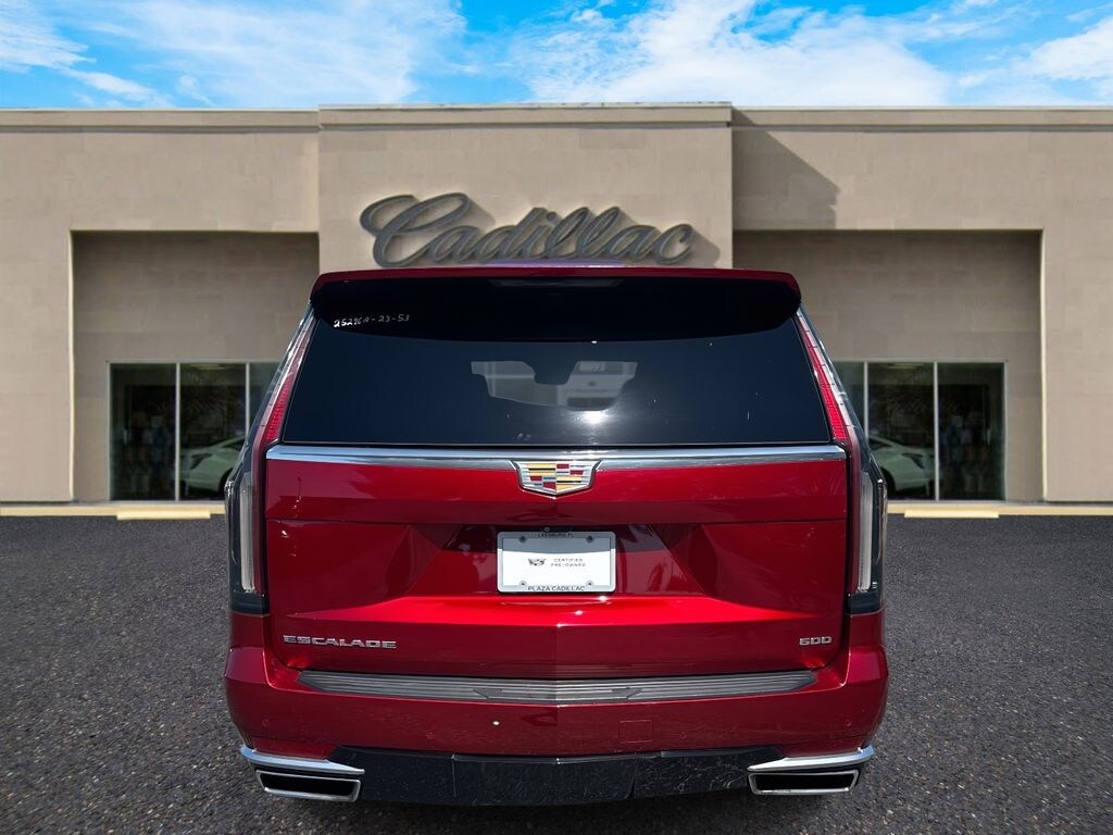 Plaza Cadillac is excited to offer this handsome 2023 Cadillac Escalade Premium Luxury in Radiant Red Tintcoat Beautifully equipped with Preferred Equipment Group 1SB (Adaptive Cruise Control, AKG Studio 19-Speaker Audio System, Automatic Seat Belt Tightening, Door Lock & Latch Shields, Enhanced Automatic Emergency Braking, Enhanced Automatic Parking Assist, Glass Breakage Sensor, Heated & Ventilated Driver & Front Passenger Seats, Lane Change Alert w/Side Blind Zone Alert, Mechanical Limited-Slip Differential, Power Panoramic Tilt-Sliding Sunroof, Rear Camera Mirror, Rear Camera Mirror Washer, Rear Cross Traffic Alert, Reconfigurable Full-Color Head-Up Display, Reverse Automatic Braking, Running Board Assist Steps, Theft-Deterrent Alarm System, Vehicle Inclination Sensor, and Vehicle Interior Movement Sensor), Cadillac Certified Pre-Owned Certified, AWD, Parchment With Jet Black Accents Leather, 16.9" Diagonal OLED Infotainment Screen, 19 Speakers, 2-Presets Memory For Driver Seat Adjuster, 3 Years of OnStar & Connected Services Plan, 3.23 Axle Ratio, 3rd row seats: split-bench, 4-Way Power Driver Lumbar Seat Adjuster, 4-Way Power Front Passenger Lumbar Seat Adjuster, 4-Wheel Disc Brakes, 8-Way Power Driver Seat Adjuster, 8-Way Power Front Passenger Seat Adjuster, ABS brakes, Air Conditioning, Alloy wheels, AM/FM radio: SiriusXM with 360L, Apple CarPlay/Android Auto, Audio memory, Auto High-beam Headlights, Auto tilt-away steering wheel, Auto-dimming door mirrors, Auto-dimming Rear-View mirror, Automatic temperature control, Brake assist, Bumpers: body-color, Compass, Delay-off headlights, Driver door bin, Driver vanity mirror, Dual front impact airbags, Dual front side impact airbags, Electronic Stability Control, Emergency communication system: OnStar and Cadillac connected services capable, Exterior Parking Camera Rear, Four wheel independent suspension, Front anti-roll bar, Front Bucket Seats, Front Center Armrest w/Storage, Front dual zone A/C, Front reading lights, Fully automatic headlights, Garage door transmitter, HD Radio, Heads-Up Display, Heated door mirrors, Heated Driver & Front Passenger Seats, Heated front seats, Heated rear seats, Heated steering wheel, Illuminated entry, Leather Seating Surfaces w/Mini-Chevron Perf Inserts, Low tire pressure warning, Memory seat, Navigation System, Not Equipped w/2nd Row Express-Up Window Control, Not Equipped w/4-Way Driver & Fr Pass Pwr Lumbar, Not Equipped w/Super Cruise, Not Equipped w/Super Cruise (00U), Occupant sensing airbag, Outside temperature display, Overhead airbag, Overhead console, Panic alarm, Passenger door bin, Passenger vanity mirror, Power door mirrors, Power driver seat, Power Liftgate, Power moonroof, Power passenger seat, Power steering, Power windows, Premium Smooth Ride Suspension, Radio data system, Radio: AM/FM w/Navigation, Rain sensing wipers, Rear air conditioning, Rear anti-roll bar, Rear reading lights, Rear window defroster, Rear window wiper, Remote keyless entry, Security system, SiriusXM w/360L, Speed control, Split folding rear seat, Spoiler, Steering wheel memory, Steering wheel mounted audio controls, Super Cruise, Tachometer, Teen Driver, Telescoping steering wheel, Tilt steering wheel, Traction control, Trip computer, Turn signal indicator mirrors, Variably in
