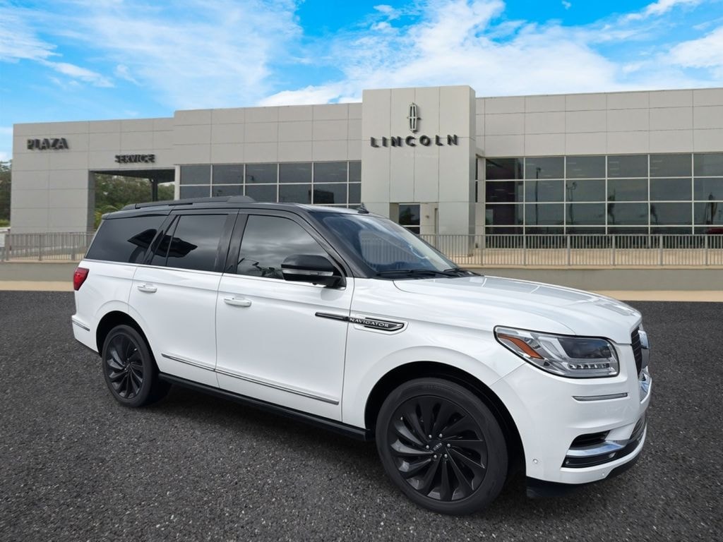 Plaza Lincoln is honored to offer this wonderful-looking 2021 Lincoln Navigator Black Label in Pristine White Beautifully equipped with Equipment Group 800A Black Label, GVWR: 7,625 lbs Payload Package, Special Edition Package (Black Painted Cap Sideview Mirror, Black Painted Roof, Black Painted Roof Rack, Lincoln Star Hub Wheel Ornament, Unique Black Mesh Grille, and Wheels: 22" Black Aluminum), Lincoln CPO - Lincoln Black Label Program Certified, 4WD, Alpine w/Venetian Lthr Htd/Ventilated Captain's Chairs (B), 20 Speakers, 3.73 Axle Ratio, 3rd row seats: split-bench, 4-Wheel Disc Brakes, ABS brakes, Adaptive suspension, Adjustable pedals, Air Conditioning, Alloy wheels, AM/FM radio: SiriusXM, Audio memory, Auto High-beam Headlights, Auto tilt-away steering wheel, Auto-dimming door mirrors, Auto-dimming Rear-View mirror, Auto-leveling suspension, Automatic temperature control, Bodyside moldings, Brake assist, Bumpers: body-color, Compass, Delay-off headlights, Driver door bin, Driver vanity mirror, Driver's Seat Mounted Armrest, Dual front impact airbags, Dual front side impact airbags, Electronic Stability Control, Emergency communication system: 911 Assist, Exterior Parking Camera Rear, Four wheel independent suspension, Front anti-roll bar, Front Bucket Seats, Front dual zone A/C, Front fog lights, Front reading lights, Fully automatic headlights, Garage door transmitter, Genuine wood console insert, Genuine wood door panel insert, Head restraints memory, Heads-Up Display, Heated door mirrors, Heated front seats, Heated rear seats, Heated steering wheel, HVAC memory, Illuminated entry, Knee airbag, Leather steering wheel, Low tire pressure warning, Memory seat, Navigation System, Occupant sensing airbag, Outside temperature display, Overhead airbag, Overhead console, Panic alarm, Passenger door bin, Passenger seat mounted armrest, Passenger vanity mirror, Pedal memory, Power adjustable front head restraints, Power adjustable rear head restraints, Power door mirrors, Power driver seat, Power Liftgate, Power moonroof: Panoramic Vista Roof, Power passenger seat, Power steering, Power windows, Radio data system, Radio: Revel Ultima AM/FM/HD/MP3 Audio System, Rain sensing wipers, Rear air conditioning, Rear anti-roll bar, Rear audio controls, Rear reading lights, Rear window defroster, Rear window wiper, Reclining 3rd row seat, Remote keyless entry, Security system, SiriusXM Radio, Speed control, Speed-sensing steering, Speed-Sensitive Wipers, Split folding rear seat, Spoiler, Steering wheel memory, Steering wheel mounted audio controls, SYNC 3 Communications & Entertainment System, Tachometer, Telescoping steering wheel, Tilt steering wheel, Traction control, Trip computer, Turn signal indicator mirrors, Variably intermittent wipers, Venetian Lthr Htd/Ventilated Captain's Chairs (B), Ventilated front seats, Voice-Activated Touchscreen Navigation System, Wheels: 22" 12-Spoke Ebony Black Painted, and Wheels: 22" 21-Spoke Bright Machined Aluminum!