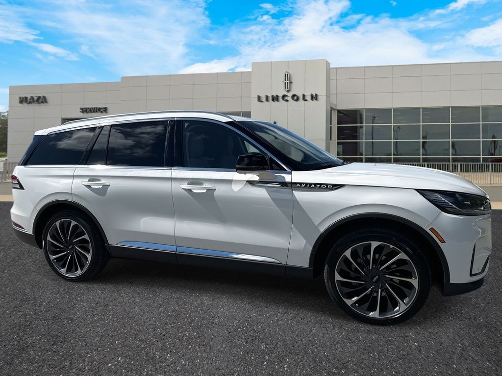 Plaza Lincoln is pumped up to offer this outstanding 2025 Lincoln Aviator Reserve in White Beautifully equipped with Equipment Group 200A (Advanced Heads-Up Display, Auto Air Refresh, Lincoln BlueCruise Equipped (4-Years Included), and Wireless Charging Pad), Illumination Package (Adaptive Dynamic Bending Lighting, Adaptive Pixel LED Headlamps, Illuminated Lincoln Star in Grille, Lincoln Dynamic Signature Lighting, and Speed Dependent Lighting), 14 Speakers, 3rd row seats: split-bench, 4-Wheel Disc Brakes, 40/Mini Console/40 Dual Captain's Chairs, ABS brakes, Adaptive suspension, Air Conditioning, Alloy wheels, AM/FM radio: SiriusXM, Apple CarPlay/Android Auto, Audio memory, Auto High-beam Headlights, Auto-dimming door mirrors, Auto-dimming Rear-View mirror, Automatic temperature control, Brake assist, Bumpers: body-color, Compass, Delay-off headlights, Driver door bin, Driver vanity mirror, Dual front impact airbags, Dual front side impact airbags, Electronic Stability Control, Emergency communication system: 911 Assist, Four wheel independent suspension, Front anti-roll bar, Front Bucket Seats, Front Center Armrest, Front dual zone A/C, Front reading lights, Fully automatic headlights, Garage door transmitter, Genuine wood console insert, Genuine wood dashboard insert, Heads-Up Display, Heated door mirrors, Heated front seats, Heated steering wheel, HVAC memory, Illuminated entry, Knee airbag, Leather steering wheel, Lincoln Digital Experience, Low tire pressure warning, Memory seat, Navigation system: Connected Navigation (1-year trial), Occupant sensing airbag, Outside temperature display, Overhead airbag, Overhead console, Panic alarm, Passenger door bin, Passenger vanity mirror, Power door mirrors, Power driver seat, Power Liftgate, Power moonroof: Panoramic Vista Roof, Power passenger seat, Power steering, Power windows, Premium Lthr Heated/Ventilated Fnt Captain's Chairs, Radio data system, Radio: Revel Audio System w/14 Speakers, Rain sensing wipers, Rear air conditioning, Rear anti-roll bar, Rear audio controls, Rear dual zone A/C, Rear reading lights, Rear window defroster, Rear window wiper, Remote keyless entry, Security system, SiriusXM, Speed control, Speed-Sensitive Wipers, Split folding rear seat, Spoiler, Steering wheel memory, Steering wheel mounted A/C controls, Steering wheel mounted audio controls, Tachometer, Telescoping steering wheel, Tilt steering wheel, Traction control, Trip computer, Turn signal indicator mirrors, Variably intermittent wipers, Ventilated front seats, Wheels: 21" Bright-Machined Aluminum, and Wheels: 22" Bright-Machined Aluminum!