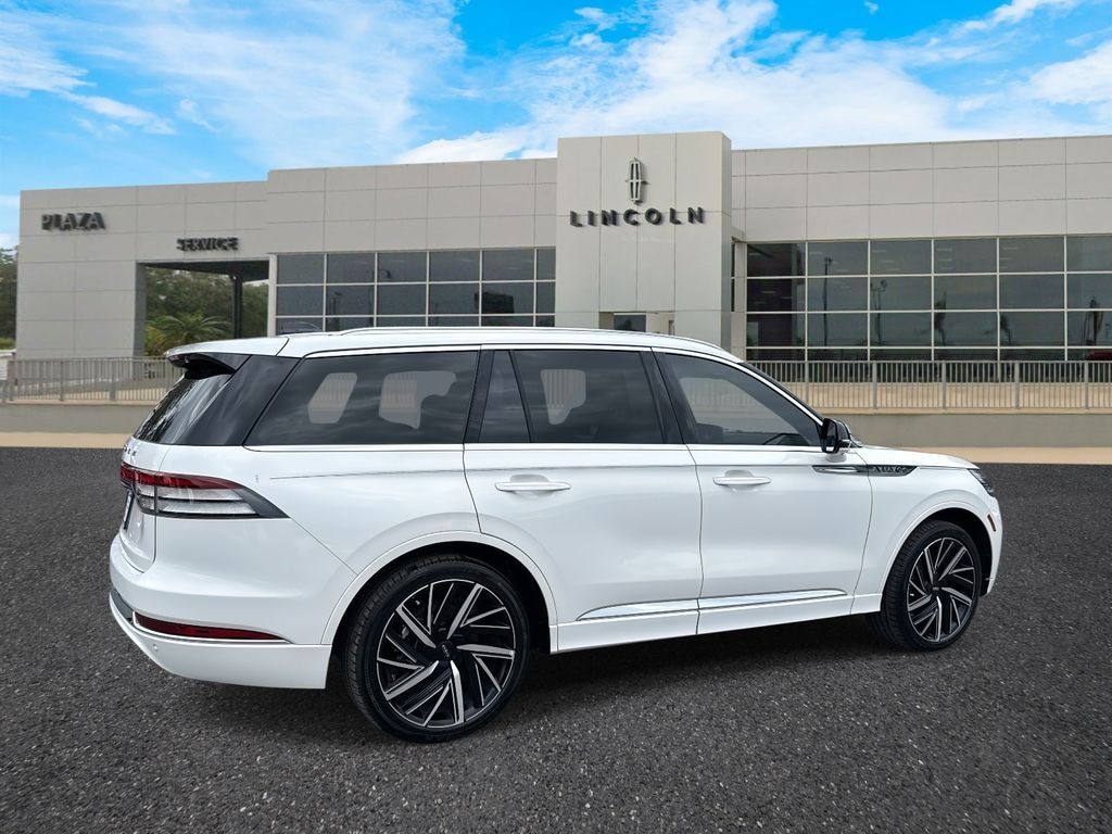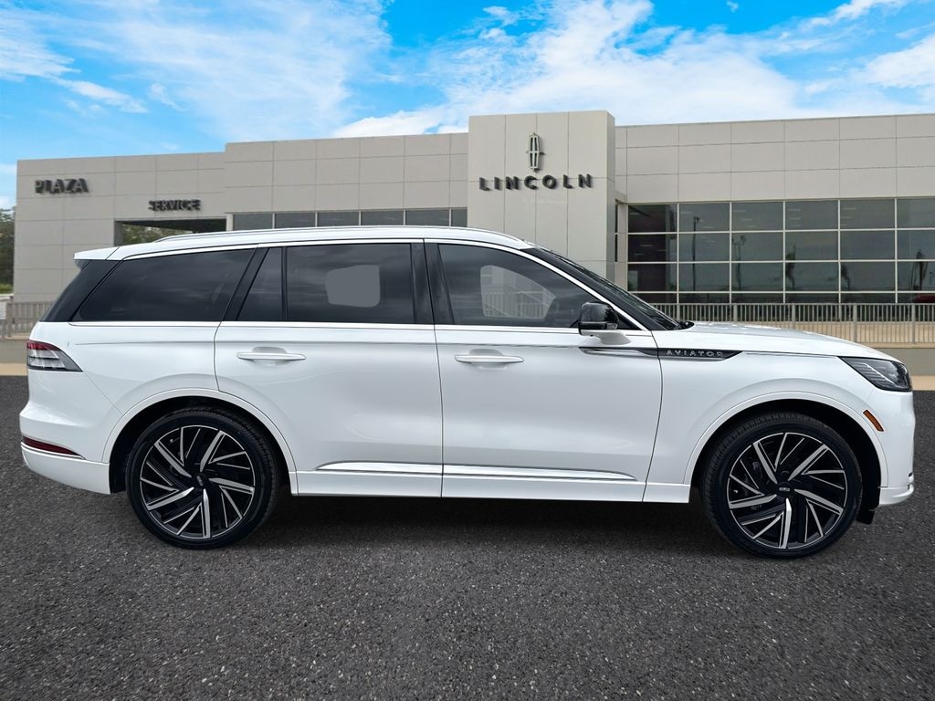 Plaza Lincoln is proud to offer this great 2025 Lincoln Aviator Black Label in White Metallic Beautifully equipped with Equipment Group 800A, 28 Speakers, 30-Way Perfect Position Seats w/Active Motion, 3rd row seats: split-bench, 4-Wheel Disc Brakes, ABS brakes, Adaptive suspension, Air Conditioning, All-Weather 1st & 2nd Row Floor Liners, Alloy wheels, AM/FM radio: SiriusXM, Apple CarPlay/Android Auto, Audio memory, Auto High-beam Headlights, Auto-dimming door mirrors, Auto-dimming Rear-View mirror, Automatic temperature control, Brake assist, Bumpers: body-color, Compass, Delay-off headlights, Driver door bin, Driver vanity mirror, Dual front impact airbags, Dual front side impact airbags, Electronic Stability Control, Emergency communication system: 911 Assist, Four wheel independent suspension, Front anti-roll bar, Front Bucket Seats, Front Center Armrest, Front dual zone A/C, Front reading lights, Full Rear Console, Fully automatic headlights, Garage door transmitter, Genuine wood console insert, Genuine wood dashboard insert, Head restraints memory, Heads-Up Display, Heated door mirrors, Heated front seats, Heated rear seats, Heated steering wheel, HVAC memory, Illuminated entry, Knee airbag, Leather steering wheel, Lincoln Digital Experience, Low tire pressure warning, Memory seat, Navigation system: Connected Navigation (1-year trial), Occupant sensing airbag, Outside temperature display, Overhead airbag, Overhead console, Panic alarm, Passenger door bin, Passenger vanity mirror, Power adjustable front head restraints, Power door mirrors, Power driver seat, Power Liftgate, Power moonroof: Panoramic Vista Roof, Power passenger seat, Power steering, Power windows, Radio data system, Radio: Revel Ultima 3D Audio System w/28 Speakers, Rain sensing wipers, Rear air conditioning, Rear anti-roll bar, Rear audio controls, Rear dual zone A/C, Rear reading lights, Rear window defroster, Rear window wiper, Remote keyless entry, Savannah Leather Heated/Ventilated Seats (76A), Security system, SiriusXM, Speed control, Speed-Sensitive Wipers, Split folding rear seat, Spoiler, Steering wheel memory, Steering wheel mounted A/C controls, Steering wheel mounted audio controls, Tachometer, Telescoping steering wheel, Tilt steering wheel, Traction control, Trip computer, Turn signal indicator mirrors, Variably intermittent wipers, Ventilated front seats, Ventilated rear seats, Wheels: 22" Bright-Machined Aluminum, and Wheels: 22" Ebony Black Bright-Machined!
