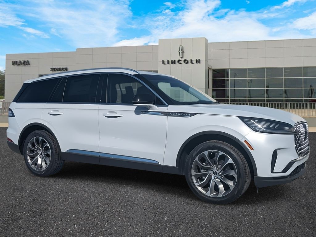 Plaza Lincoln is excited to offer this great 2025 Lincoln Aviator Reserve in Crystal White Beautifully equipped with Equipment Group 200A (Advanced Heads-Up Display, Auto Air Refresh, Lincoln BlueCruise Equipped (4-Years Included), and Wireless Charging Pad), Luxury Package (30-Way Perfect Position Seats w/Active Motion, Heated & Ventilated Rear Seats, and Radio: Revel Ultima 3D Audio System w/28 Speakers), 14 Speakers, 3rd row seats: split-bench, 4-Wheel Disc Brakes, 40/Mini Console/40 Dual Captain's Chairs, ABS brakes, Adaptive suspension, Air Conditioning, All-Weather 1st & 2nd Row Floor Liners, Alloy wheels, AM/FM radio: SiriusXM, Apple CarPlay/Android Auto, Audio memory, Auto High-beam Headlights, Auto-dimming door mirrors, Auto-dimming Rear-View mirror, Automatic temperature control, Brake assist, Bumpers: body-color, Compass, Delay-off headlights, Driver door bin, Driver vanity mirror, Dual front impact airbags, Dual front side impact airbags, Electronic Stability Control, Emergency communication system: 911 Assist, Four wheel independent suspension, Front anti-roll bar, Front Bucket Seats, Front Center Armrest, Front dual zone A/C, Front reading lights, Full Rear Console, Fully automatic headlights, Garage door transmitter, Genuine wood console insert, Genuine wood dashboard insert, Heads-Up Display, Heated door mirrors, Heated front seats, Heated steering wheel, HVAC memory, Illuminated entry, Knee airbag, Leather steering wheel, Lincoln Digital Experience, Low tire pressure warning, Memory seat, Navigation system: Connected Navigation (1-year trial), Occupant sensing airbag, Outside temperature display, Overhead airbag, Overhead console, Panic alarm, Passenger door bin, Passenger vanity mirror, Power door mirrors, Power driver seat, Power Liftgate, Power moonroof: Panoramic Vista Roof, Power passenger seat, Power steering, Power windows, Premium Lthr Heated/Ventilated Fnt Captain's Chairs, Radio data system, Radio: Revel Audio System w/14 Speakers, Rain sensing wipers, Rear air conditioning, Rear anti-roll bar, Rear audio controls, Rear dual zone A/C, Rear reading lights, Rear window defroster, Rear window wiper, Remote keyless entry, Security system, SiriusXM, Speed control, Speed-Sensitive Wipers, Split folding rear seat, Spoiler, Steering wheel memory, Steering wheel mounted A/C controls, Steering wheel mounted audio controls, Tachometer, Telescoping steering wheel, Tilt steering wheel, Traction control, Trip computer, Turn signal indicator mirrors, Variably intermittent wipers, Ventilated front seats, and Wheels: 21" Bright-Machined Aluminum!