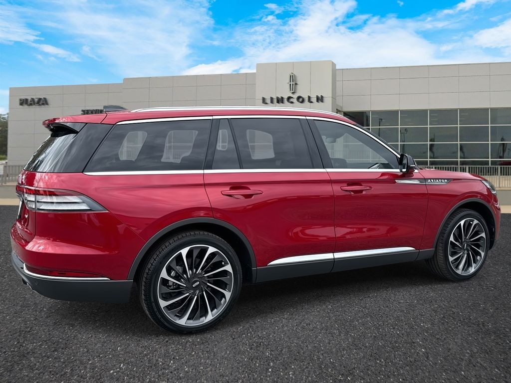Plaza Lincoln is very proud to offer this fantastic 2025 Lincoln Aviator Reserve in Red Beautifully equipped with Equipment Group 200A (Advanced Heads-Up Display, Auto Air Refresh, Lincoln BlueCruise Equipped (4-Years Included), and Wireless Charging Pad), Illumination Package (Adaptive Dynamic Bending Lighting, Adaptive Pixel LED Headlamps, Illuminated Lincoln Star in Grille, Lincoln Dynamic Signature Lighting, and Speed Dependent Lighting), 14 Speakers, 3rd row seats: split-bench, 4-Wheel Disc Brakes, 40/Mini Console/40 Dual Captain's Chairs, ABS brakes, Adaptive suspension, Air Conditioning, All-Weather 1st & 2nd Row Floor Liners (16A), Alloy wheels, AM/FM radio: SiriusXM, Apple CarPlay/Android Auto, Audio memory, Auto High-beam Headlights, Auto-dimming door mirrors, Auto-dimming Rear-View mirror, Automatic temperature control, Brake assist, Bumpers: body-color, Compass, Delay-off headlights, Driver door bin, Driver vanity mirror, Dual front impact airbags, Dual front side impact airbags, Electronic Stability Control, Emergency communication system: 911 Assist, Four wheel independent suspension, Front anti-roll bar, Front Bucket Seats, Front Center Armrest, Front dual zone A/C, Front reading lights, Fully automatic headlights, Garage door transmitter, Genuine wood console insert, Genuine wood dashboard insert, Heads-Up Display, Heated door mirrors, Heated front seats, Heated steering wheel, HVAC memory, Illuminated entry, Knee airbag, Leather steering wheel, Lincoln Digital Experience, Low tire pressure warning, Memory seat, Navigation system: Connected Navigation (1-year trial), Occupant sensing airbag, Outside temperature display, Overhead airbag, Overhead console, Panic alarm, Passenger door bin, Passenger vanity mirror, Power door mirrors, Power driver seat, Power Liftgate, Power moonroof: Panoramic Vista Roof, Power passenger seat, Power steering, Power windows, Premium Lthr Heated/Ventilated Fnt Captain's Chairs, Radio data system, Radio: Revel Audio System w/14 Speakers, Rain sensing wipers, Rear air conditioning, Rear anti-roll bar, Rear audio controls, Rear dual zone A/C, Rear reading lights, Rear window defroster, Rear window wiper, Remote keyless entry, Security system, SiriusXM, Speed control, Speed-Sensitive Wipers, Split folding rear seat, Spoiler, Steering wheel memory, Steering wheel mounted A/C controls, Steering wheel mounted audio controls, Tachometer, Telescoping steering wheel, Tilt steering wheel, Traction control, Trip computer, Turn signal indicator mirrors, Variably intermittent wipers, Ventilated front seats, Wheels: 21" Bright-Machined Aluminum, and Wheels: 22" Bright-Machined Aluminum!