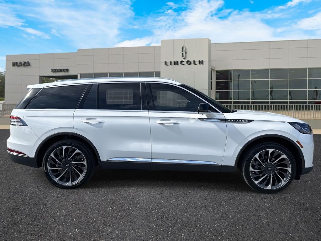 Plaza Lincoln is pumped up to offer this great 2026 Lincoln Aviator Reserve in White Metallic Beautifully equipped with Equipment Group 201A (Advanced Heads-Up Display, Auto Air Refresh, Lincoln BlueCruise Equipped (4-Years Included), Wheels: 22" Bright-Machined Aluminum, and Wireless Charging Pad), Illumination Package (Adaptive Dynamic Bending Lighting, Adaptive Pixel LED Headlamps, Illuminated Lincoln Star in Grille, Lincoln Dynamic Signature Lighting, and Speed Dependent Lighting), Lincoln Connectivity Package (4-years included), Luxury Package (30-Way Perfect Position Seats w/Active Motion, Heated & Ventilated Rear Seats, and Radio: Revel Ultima 3D Audio System w/28 Speakers), 14 Speakers, 3rd row seats: split-bench, 4-Wheel Disc Brakes, 40/Mini Console/40 Dual Captain's Chairs, ABS brakes, Adaptive suspension, Air Conditioning, Alloy wheels, AM/FM radio: SiriusXM, Apple CarPlay/Android Auto, Audio memory, Auto High-beam Headlights, Auto-dimming door mirrors, Auto-dimming Rear-View mirror, Automatic temperature control, Brake assist, Bumpers: body-color, Compass, Delay-off headlights, Driver door bin, Driver vanity mirror, Dual front impact airbags, Dual front side impact airbags, Electronic Stability Control, Emergency communication system: 911 Assist, Exterior Parking Camera Rear, Four wheel independent suspension, Front anti-roll bar, Front Bucket Seats, Front Center Armrest, Front dual zone A/C, Front reading lights, Full Rear Console, Fully automatic headlights, Garage door transmitter, Genuine wood console insert, Genuine wood dashboard insert, Heads-Up Display, Heated door mirrors, Heated front seats, Heated steering wheel, HVAC memory, Illuminated entry, Knee airbag, Leather steering wheel, Lincoln Digital Experience, Low tire pressure warning, Memory seat, Navigation System, Occupant sensing airbag, Outside temperature display, Overhead airbag, Overhead console, Panic alarm, Passenger door bin, Passenger vanity mirror, Power door mirrors, Power driver seat, Power Liftgate, Power moonroof: Panoramic Vista Roof, Power passenger seat, Power steering, Power windows, Premium Lthr Heated/Ventilated Fnt Captain's Chairs, Radio data system, Radio: Revel Audio System w/14 Speakers, Rain sensing wipers, Rear air conditioning, Rear anti-roll bar, Rear audio controls, Rear dual zone A/C, Rear reading lights, Rear window defroster, Rear window wiper, Remote keyless entry, Security system, SiriusXM, Speed control, Speed-Sensitive Wipers, Split folding rear seat, Spoiler, Steering wheel memory, Steering wheel mounted A/C controls, Steering wheel mounted audio controls, Tachometer, Telescoping steering wheel, Tilt steering wheel, Traction control, Trip computer, Turn signal indicator mirrors, Variably intermittent wipers, Ventilated front seats, and Wheels: 21" Bright-Machined Aluminum!