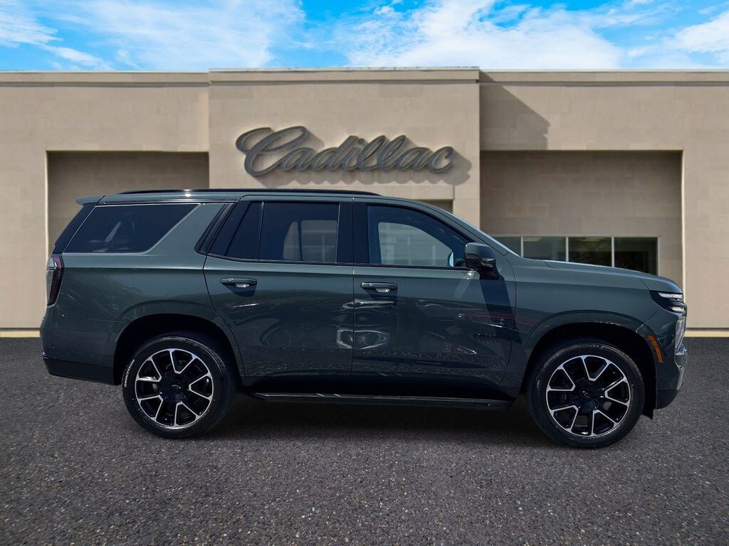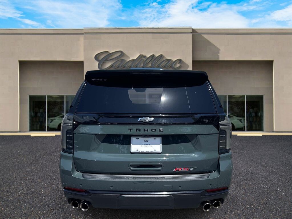 Plaza Cadillac is pumped up to offer this good-looking 2025 Chevrolet Tahoe RST in Cypress Beautifully equipped with Advanced Trailering Package (Blind Zone Steering Assist with Trailering, Hitch View with Pan/Zoom Image Adjustment, and Smart Trailer Integration Indicator), Comfort Package (2nd Row Power Release 60/40 Split-Folding Bench Seat, 3rd Row 60/40 Power-Folding Split-Bench Seat, Bose 10-Speaker Centerpoint Surround Audio System Feature, Heated 2nd Row Outboard Seats, Heated Steering Wheel, LED Headlamps with LED Daytime Running Lamps, LED Tail Lamps, Memory Settings, and Outside Heated Power-Adjustable Mirrors), License Plate Front Mounting Package, Max Trailering Package (Integrated Trailer Brake Controller), Preferred Equipment Group 1SP (1st and 2nd Row Color-Keyed Carpeted Floor Mats, 3-Spoke Wrapped Steering Wheel, 3rd Row Manual 60/40 Split-Folding Bench Seats, Auto-Dimming Inside Rear-View Mirror, Bright Front and Rear Door Sill Plates, Color-Keyed Carpeting Floor Covering, Dual Exhaust System, Floor Console with Storage Area, Front Bucket Seats, Front LED Fog Lamps, Front Pedestrian and Bicyclist Braking, Frontal Driver and Outboard Passenger Airbags, Memory Settings For Driver, Rear Power Liftgate, Remote Start, RST Exterior Features, Set of 4 Wheel Locks, SiriusXM with 360L Trial Subscription, Universal Home Remote, USB Ports, Wheels: 22" x 9" Bright Machined, and Wireless Phone Charging), RST Capability Package (Floor Console and Magnetic Ride Control Suspension), Tahoe RST, 4D Sport Utility, EcoTec3 6.2L V8, 2-Way Power Driver Lumbar Seat Adjuster, 2-Way Power Front Passenger Lumbar Seat Adjuster, 3.23 Rear Axle Ratio, 3rd row seats: split-bench, 4-Wheel Disc Brakes, 6 Speakers, 6-Speaker Audio System Feature, 8-Way Power Driver Seat Adjuster, 8-Way Power Front Passenger Seat Adjuster, ABS brakes, Air Conditioning, Alloy wheels, AM/FM radio: SiriusXM with 360L, Apple CarPlay/Android Auto, Auto High-beam Headlights, Auto-dimming Rear-View mirror, Automatic temperature control, Brake assist, Bumpers: body-color, Compass, Delay-off headlights, Driver door bin, Driver vanity mirror, Dual front impact airbags, Dual front side impact airbags, Dual-Pane Power Panoramic Sunroof, Electronic Stability Control, Emergency communication system: OnStar and Chevrolet connected services capable, Exterior Parking Camera Rear, Extra Capacity Cooling System, Four wheel independent suspension, Front anti-roll bar, Front Center Armrest, Front dual zone A/C, Front fog lights, Front reading lights, Fully automatic headlights, Garage door transmitter, Heated door mirrors, Heated Driver and Front Passenger Seats, Heated front seats, Illuminated entry, Low tire pressure warning, Memory seat, Navigation system: Google built-in compatibility (select service plan required, terms and limitations apply), Occupant sensing airbag, Outside temperature display, Overhead airbag, Overhead console, Panic alarm, Passenger door bin, Passenger vanity mirror, Perforated Leather Seat Trim, Power door mirrors, Power driver seat, Power Liftgate, Power passenger seat, Power Release 2nd Row Bucket Seats, Power steering, Power windows, Premium audio system: Chevrolet Infotainment 3 Premium, Premium Smooth Ride Suspension, Radio data system, Radio: 17.7" Diagonal Advanced Color LCD Display, Rain sensing wipers, Rear air conditioning, Rear anti-roll bar, Rear reading lights, Rear seat center armrest, Rear window defroster, Rear window wiper, Remote keyless entry, Security system, Speed control, Speed-sensing steering, Split folding rear seat, Spoiler, Steering wheel mounted audio controls, Tachometer, Telescoping steering wheel, Tilt steering wheel, Traction control, Trip computer, Variably intermittent wipers, and Voltmeter!