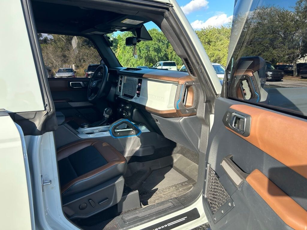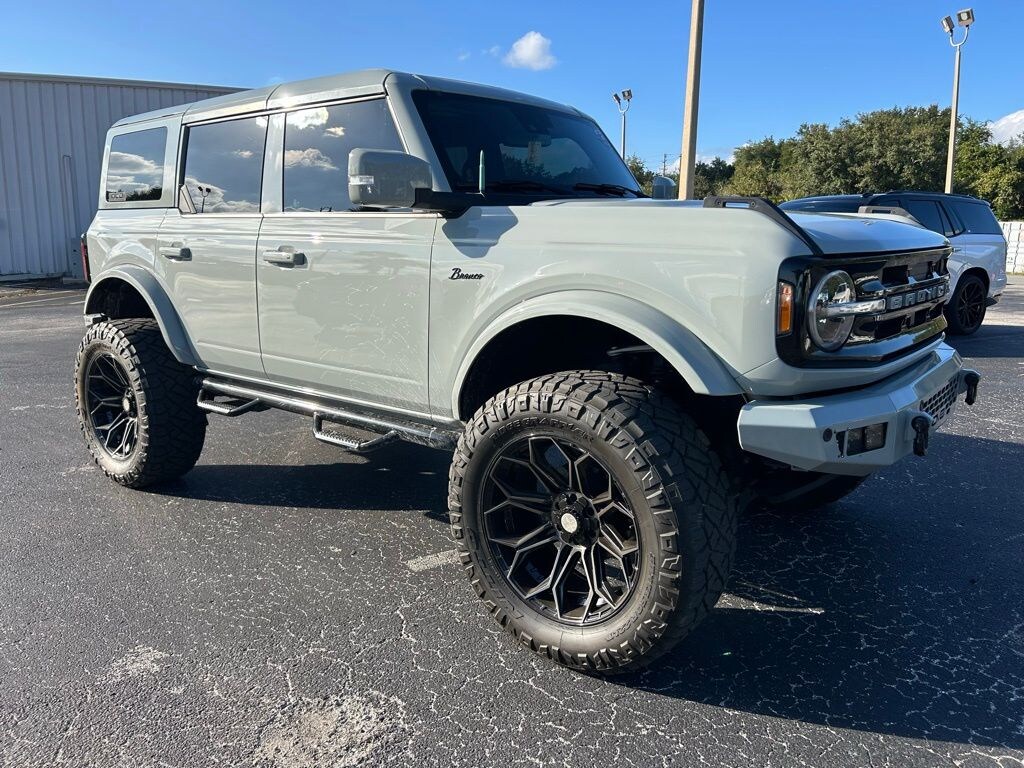 Plaza Cadillac is very proud to offer this wonderful 2023 Ford Bronco Outer Banks in Cactus Gray Beautifully equipped with Equipment Group 313A High Package (12" LCD Capacitive Touchscreen w/Swipe Capability and Sideview Mirrors), Bronco Outer Banks Advanced, 4WD, Cactus Gray, 18" Bright Machined Aluminum Wheels, 3.73 Axle Ratio, 4-Wheel Disc Brakes, 7 Speakers, ABS brakes, Air Conditioning, Alloy wheels, AM/FM radio: SiriusXM with 360L, AM/FM Stereo, Auto High-beam Headlights, Auto-dimming Rear-View mirror, Automatic temperature control, Auxiliary Switches, Brake assist, Carbonized Gray Molded-In-Color Hard Top, Compass, Connected Navigation, Delay-off headlights, Driver door bin, Driver vanity mirror, Dual front impact airbags, Dual front side impact airbags, Electronic Stability Control, Emergency communication system: 911 Assist, Exterior Parking Camera Rear, Front & Rear Floor Liners, Front anti-roll bar, Front Bucket Seats, Front Center Armrest, Front dual zone A/C, Front fog lights, Front reading lights, Front Row Top Panels Storage Bag, Front wheel independent suspension, Fully automatic headlights, Hard Top Sound Deadening Headliner, Heated door mirrors, Heated front seats, Heated Leather-Trimmed/Vinyl Bucket Seats, Illuminated entry, Integrated roll-over protection, Keyless Entry Keypad, Leather Shift Knob, Low tire pressure warning, Navigation system: Connected Navigation, Occupant sensing airbag, Outside temperature display, Overhead airbag, Overhead console, Panic alarm, Passenger door bin, Passenger vanity mirror, Power door mirrors, Power steering, Power windows, Radio data system, Rear-Window Defroster & Washer, Remote keyless entry, Security system, SiriusXM Radio w/360L, Speed control, Split folding rear seat, Steering wheel mounted audio controls, SYNC 4, Tachometer, Telescoping steering wheel, Tilt steering wheel, Towing Capability, Traction control, Trip computer, Variably intermittent wipers, and Voltmeter!
