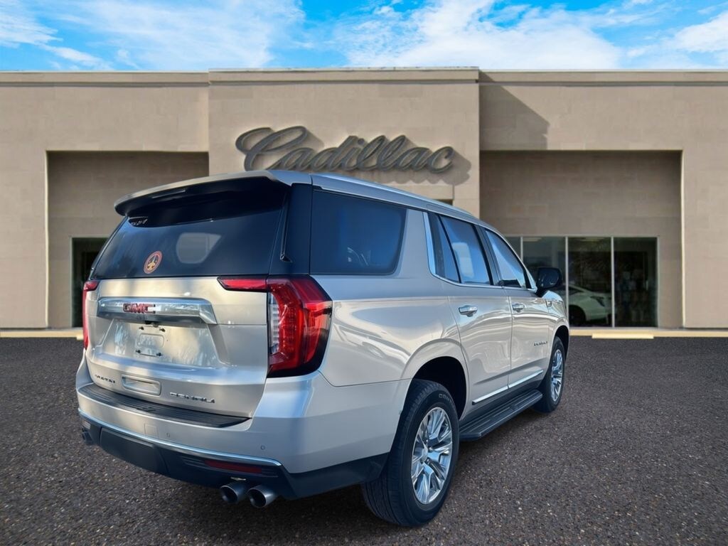 Plaza Cadillac is pleased to offer this fantastic 2021 GMC Yukon Denali in Pearl Beige Metallic Beautifully equipped with Preferred Equipment Group 5SA (12-Way Power Seat Adjusters, 15" Diagonal Multi-Color Head-Up Display, 2 Presets For Outside Rearview Mirrors, 3rd Row 60/40 Power-Folding Split-Bench Seat, Bright Front & Rear Door Sill Plates, Chrome Door Handles w/Body-Color Strip, Dual Exhaust System, Galvano Bodyside Moldings, Hands-Free Power Programmable Rear Liftgate, HD Surround Vision, Heated & Ventilated Driver & Front Passenger Seats, Heated 2nd Row Outboard Position Seats, Heated Automatic Steering Wheel, Heated Driver & Front Passenger Seats, Inside Rear-View Auto-Dimming Mirror, Outside Heated Power-Adjustable Mirrors, Power Release 2nd Row Bucket Seats, Power Tilt & Telescopic Steering Column, Rear Pedestrian Alert, Safety Alert Seat, and Universal Home Remote), Yukon Denali, EcoTec3 6.2L V8, Teak/Light Shale Leather, 14 Speakers, 3.23 Rear Axle Ratio, 3rd row seats: split-bench, 4-Wheel Disc Brakes, ABS brakes, Adaptive suspension, Air Conditioning, Alloy wheels, AM/FM radio: SiriusXM with 360L, Apple CarPlay/Android Auto, Auto High-beam Headlights, Auto-dimming door mirrors, Auto-dimming Rear-View mirror, Auto-leveling suspension, Automatic Emergency Braking, Automatic temperature control, Bodyside moldings, Bose 14-Speaker Surround w/CenterPoint, Brake assist, Bumpers: body-color, Cargo Security Shade (LPO), Compass, Delay-off headlights, Driver door bin, Driver vanity mirror, Dual front impact airbags, Dual front side impact airbags, Dual-Pane Panoramic Power Sunroof, Electronic Stability Control, Emergency communication system: OnStar and GMC connected services capable, Floor Console, Following Distance Indicator, Forward Collision Alert, Four wheel independent suspension, Front & Rear Park Assist, Front anti-roll bar, Front Bucket Seats, Front Center Armrest, Front dual zone A/C, Front fog lights, Front Pedestrian Braking, Front reading lights, Fully automatic headlights, Garage door transmitter, HD Radio, Heads-Up Display, Heated door mirrors, Heated front seats, Heated rear seats, Heated steering wheel, Illuminated entry, IntelliBeam Automatic High Beam On/Off, Lane Change Alert w/Side Blind Zone Alert, Lane Keep Assist w/Lane Departure Warning, Leather steering wheel, Low tire pressure warning, Magnetic Ride Control Suspension, Memory seat, Navigation System, Occupant sensing airbag, Outside temperature display, Overhead airbag, Overhead console, Panic alarm, Passenger door bin, Passenger vanity mirror, Perforated Leather Seating Surfaces, Power door mirrors, Power driver seat, Power Liftgate, Power passenger seat, Power steering, Power windows, Radio: AM/FM/SiriusXM w/Navigation, Rain sensing wipers, Rear air conditioning, Rear anti-roll bar, Rear Cross Traffic Alert, Rear reading lights, Rear window defroster, Rear window wiper, Remote keyless entry, Roof rack: rails only, Security system, SiriusXM w/360L, Speed control, Speed-sensing steering, Split folding rear seat, Spoiler, Steering wheel memory, Steering wheel mounted audio controls, Tachometer, Telescoping steering wheel, Tilt steering wheel, Traction control, Trip computer, Turn signal indicator mirrors, Variably intermittent wipers, Ventilated front seats, Vertical Cargo Net (LPO), Voltmeter, and Wheels: 20" x 9" 6-Spoke Polished Aluminum!