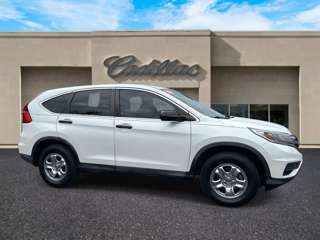 Plaza Cadillac is honored to offer this terrific 2016 Honda CR-V LX in Diamond White Pearl Beautifully equipped with 16" Styled Steel Wheels, 4 Speakers, 4-Wheel Disc Brakes, 5.048 Axle Ratio, ABS brakes, Air Conditioning, AM/FM radio, AM/FM/CD Audio System w/4 Speakers, Brake assist, Bumpers: body-color, CD player, Cloth Seat Trim, Compass, Delay-off headlights, Driver door bin, Driver vanity mirror, Dual front impact airbags, Dual front side impact airbags, Electronic Stability Control, Exterior Parking Camera Rear, Four wheel independent suspension, Front anti-roll bar, Front Bucket Seats, Front Center Armrest, Front reading lights, Illuminated entry, Low tire pressure warning, Occupant sensing airbag, Outside temperature display, Overhead airbag, Overhead console, Panic alarm, Passenger door bin, Passenger vanity mirror, Power door mirrors, Power steering, Power windows, Radio data system, Rear anti-roll bar, Rear seat center armrest, Rear window defroster, Rear window wiper, Remote keyless entry, Speed control, Speed-sensing steering, Split folding rear seat, Steering wheel mounted audio controls, Tachometer, Telescoping steering wheel, Tilt steering wheel, Traction control, and Trip computer! Awards: