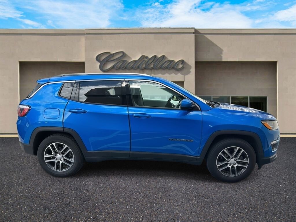 Plaza Cadillac is proud to offer this wonderful-looking 2019 Jeep Compass Latitude in Laser Blue Beautifully equipped with Popular Equipment Group (4-Way Power Lumbar Adjust, Cluster 7.0" Color Driver Info Display, and Power 8-Way Driver/Manual 6-Way Passenger Seats), Quick Order Package 28K Sun & Wheel (Power Front/Fixed Rear Full Sunroof, Sun & Wheel Group, and Wheels: 17" x 7.0" Polished/Granite Pockets Alum), 3.502 Axle Ratio, 4-Wheel Disc Brakes, 6 Speakers, ABS brakes, Air Conditioning, Alloy wheels, AM/FM radio, Anti-whiplash front head restraints, Auto-Dimming Rear-View Mirror, Automatic temperature control, Bluetooth® Streaming Audio, Brake assist, Bumpers: body-color, Compass, Delay-off headlights, Driver door bin, Driver vanity mirror, Dual front impact airbags, Dual front side impact airbags, Electronic Stability Control, Four wheel independent suspension, Front anti-roll bar, Front Bucket Seats, Front Center Armrest w/Storage, Front dual zone A/C, Front fog lights, Front reading lights, Fully automatic headlights, Heated door mirrors, Illuminated entry, Knee airbag, Leather Shift Knob, Low tire pressure warning, Media Hub (USB, AUX), Occupant sensing airbag, Outside temperature display, Overhead airbag, Overhead console, Panic alarm, ParkView Rear Back-Up Camera, Passenger door bin, Passenger vanity mirror, Power door mirrors, Power steering, Power windows, Premium Cloth/Vinyl Bucket Seats, Radio: Uconnect 4 w/7" Display, Rear anti-roll bar, Rear seat center armrest, Rear window defroster, Rear window wiper, Remote keyless entry, Remote Start System, Roof rack: rails only, Speed control, Split folding rear seat, Spoiler, Steering wheel mounted audio controls, Tachometer, Telescoping steering wheel, Tilt steering wheel, Traction control, Trip computer, Variably intermittent wipers, and Wheels: 17" x 7.0" Silver Painted Aluminum!