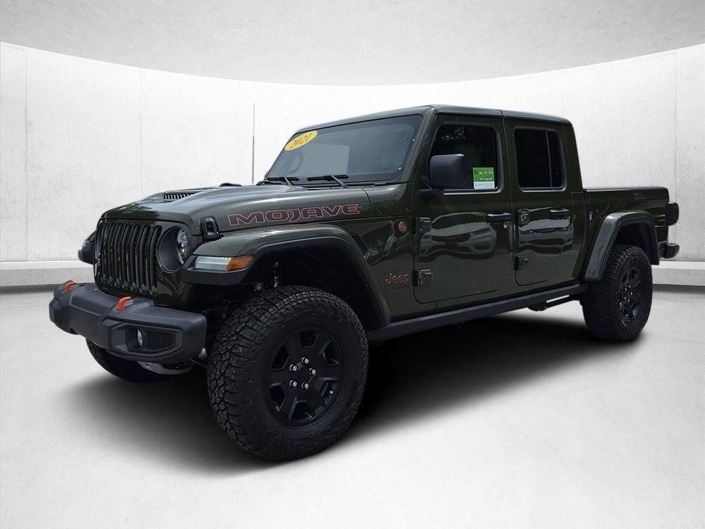 Plaza Lincoln is proud to offer this superb 2021 Jeep Gladiator Mojave in Sarge Green Clearcoat Beautifully equipped with 8.4" Radio & Premium Audio Group (1-Year SiriusXM Guardian Trial, 5-Year SiriusXM Traffic Service, 5-Year SiriusXM Travel Link Service, 8.4" Touchscreen Display, Alpine Premium Audio System, Auto-Dimming Rear-View Mirror, Emergency/Assistance Call, For Details, Visit DriveUconnect.com, GPS Navigation, HD Radio, Radio: Uconnect 4C Nav w/8.4" Display, SiriusXM Traffic Plus, and SiriusXM Travel Link), LED Lighting Group (Daytime Running Lamps LED Accents, Front LED Fog Lamps, LED Park Turn Lamps, LED Premium Reflector Headlamps, and LED Taillamps), Quick Order Package 24D, Safety Group (Blind Spot & Cross Path Detection and ParkSense Rear Park Assist System), Trailer Tow Package (240 Amp Alternator, Class IV Hitch Receiver, Heavy-Duty Engine Cooling, and Trailer Hitch Zoom), 4-Wheel Disc Brakes, 4.10 Rear Axle Ratio, 8 Speakers, 97 mph Maximum Speed Calibration, ABS brakes, Air Conditioning, Alloy wheels, AM/FM radio: SiriusXM, Apple CarPlay/Android Auto, Automatic temperature control, Bluetooth Wireless Speaker, Body Color 3-Piece Hard Top, Body Color Fender Flares (2-Piece), Brake assist, Compass, Corning Gorilla Glass, Delay-off headlights, Driver door bin, Driver vanity mirror, Dual front impact airbags, Dual front side impact airbags, Electronic Stability Control, Freedom Panel Storage Bag, Front anti-roll bar, Front Bucket Seats, Front Center Armrest w/Storage, Front dual zone A/C, Front fog lights, Front reading lights, Fully automatic headlights, Garage door transmitter, Heated door mirrors, Heavy Duty Suspension w/Gas Shocks, Illuminated entry, Integrated roll-over protection, Leather steering wheel, Low tire pressure warning, MOPAR Spray In Bedliner, No Soft Top, Occupant sensing airbag, Outside temperature display, Panic alarm, ParkView Rear Back-Up Camera, Passenger door bin, Passenger vanity mirror, Power door mirrors, Power steering, Power windows, Premium Cloth Seats w/Sport Bolsters, Radio data system, Radio: Uconnect 4 w/7" Display, Rear anti-roll bar, Rear reading lights, Rear Sliding Window, Rear Window Defroster, Remote keyless entry, Remote Start System, Security system, Speed control, Split folding rear seat, Steering wheel mounted audio controls, Tachometer, Telescoping steering wheel, Tilt steering wheel, Traction control, Trip computer, Variably intermittent wipers, Voltmeter, and Wheels: 17" x 7.5" Low Gloss Black Aluminum!