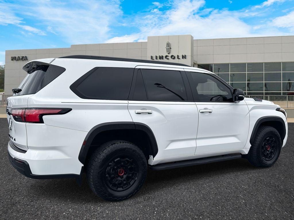 Plaza Lincoln is proud to offer this fantastic 2024 Toyota Sequoia TRD Pro in Ice Cap Beautifully equipped with Tow Technology Package, V6 Hybrid, 10-Speed Automatic, 4WD, ABS brakes, Active Cruise Control, Alloy wheels, Compass, Electronic Stability Control, Front dual zone A/C, Heated & Ventilated Front Seats, Heated door mirrors, Heated front seats, Illuminated entry, Low tire pressure warning, Navigation System, Power moonroof, Remote keyless entry, Traction control, 14 Speakers, 3.31 Axle Ratio, 3rd row seats: split-bench, 4-Wheel Disc Brakes, Air Conditioning, AM/FM radio: SiriusXM, Anti-whiplash front head restraints, Apple CarPlay/Android Auto, Auto High-beam Headlights, Auto-dimming door mirrors, Auto-dimming Rear-View mirror, Automatic temperature control, Brake assist, Bumpers: body-color, Cast Aluminum Step & Step Cover, Delay-off headlights, Driver door bin, Driver vanity mirror, Dual front impact airbags, Dual front side impact airbags, Emergency communication system: Safety Connect (10-year trial), Exterior Parking Camera Rear, Front anti-roll bar, Front Bucket Seats, Front Center Armrest w/Storage, Front fog lights, Front reading lights, Front wheel independent suspension, Fully automatic headlights, Garage door transmitter: HomeLink, Headlight cleaning, Heated steering wheel, JBL 14 Speakers, Knee airbag, Leather Shift Knob, Leather steering wheel, Memory seat, Navigation system: Drive Connect (1 year trial) includes Cloud Navigation with real time traffic and Google POI, Occupant sensing airbag, Outside temperature display, Overhead airbag, Overhead console, Panic alarm, Passenger door bin, Passenger vanity mirror, Power door mirrors, Power driver seat, Power passenger seat, Power steering, Power windows, Premium audio system: JBL, Pro High Grade Full LED Headlamps, Radio: JBL Premium Audio System, Rear air conditioning, Rear reading lights, Rear seat center armrest, Rear window defroster, Rear window wiper, Reclining 3rd row seat, Security system, Speed control, Speed-sensing steering, Split folding rear seat, Spoiler, Sport steering wheel, Steering wheel mounted audio controls, Tachometer, Telescoping steering wheel, Tilt steering wheel, TRD Pro Leather-Trimmed Steering Wheel, TRD Pro LED Light Bar, TRD Pro SofTex Seat Trim, TRD Pro Under Cover & Protector, Trip computer, Turn signal indicator mirrors, Variably intermittent wipers, Ventilated front seats, Voltmeter, Wheels: 20" Machined-Finish Alloy, and Wireless Smartphone Charger!
